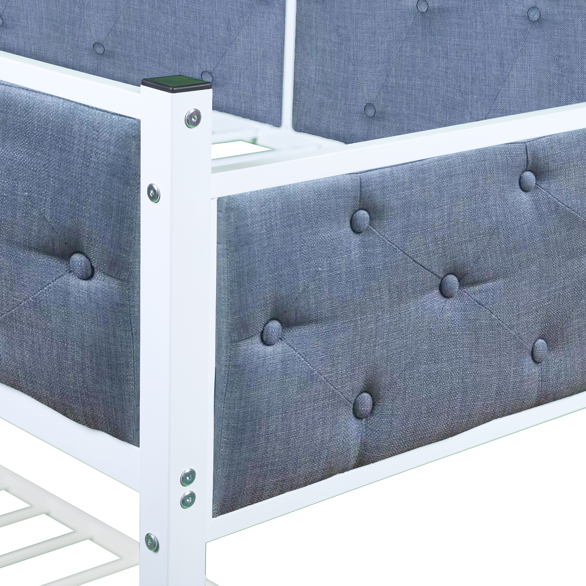 The twin over twin bunk bed is an excellent space saver. Getting rid of the heavy spring box, extra space under the lower bunk is created for storage. Cozy design makes it easy to integrate into your bedroom decoration.