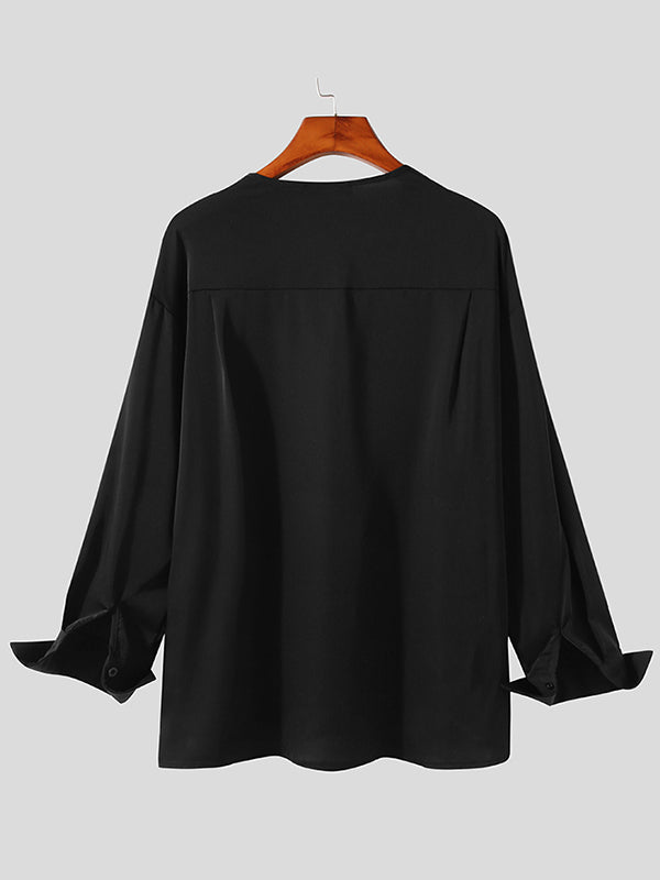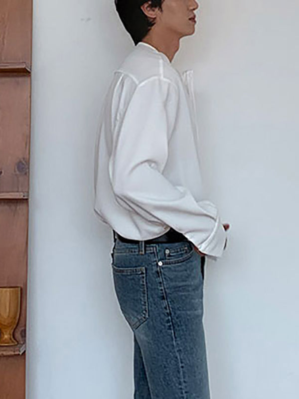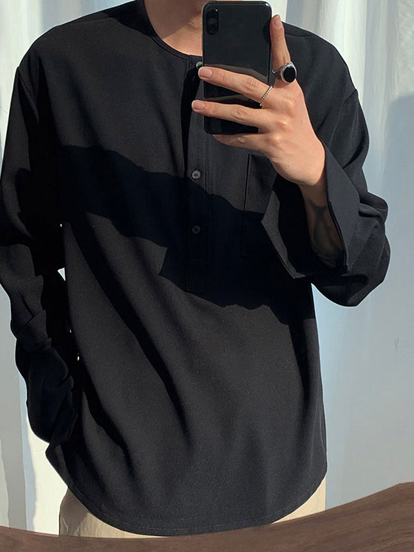 Men's Loose Solid Color Long-sleeved Shirts SKUH04705