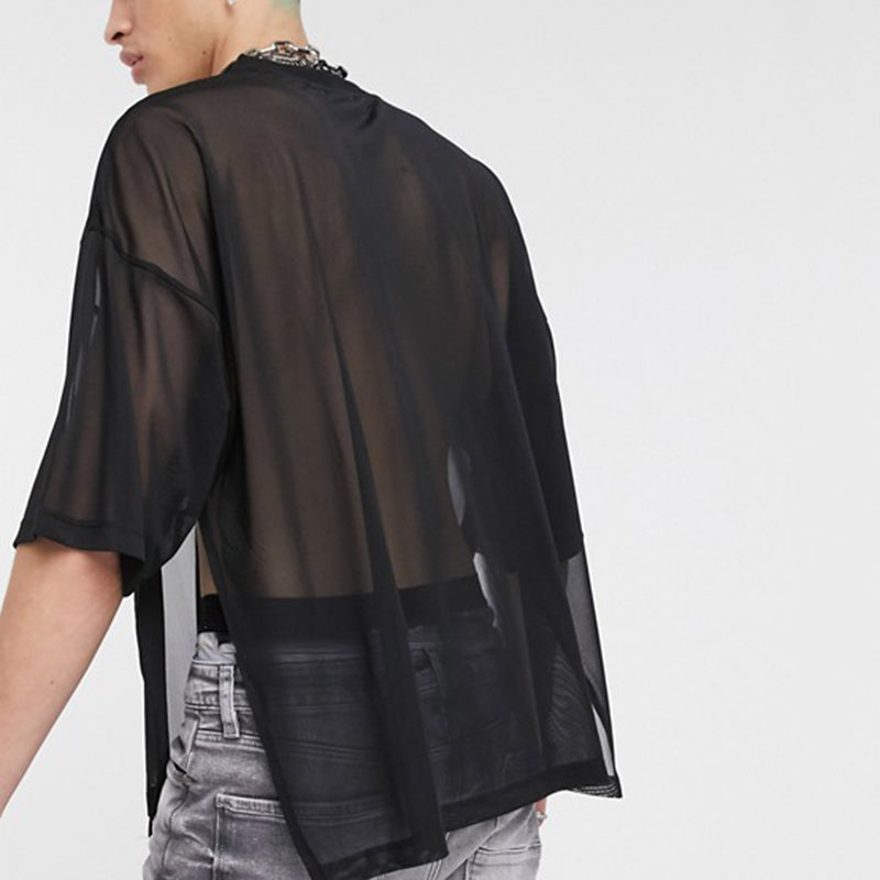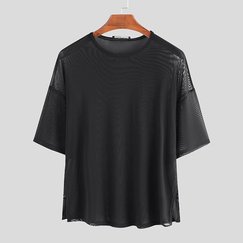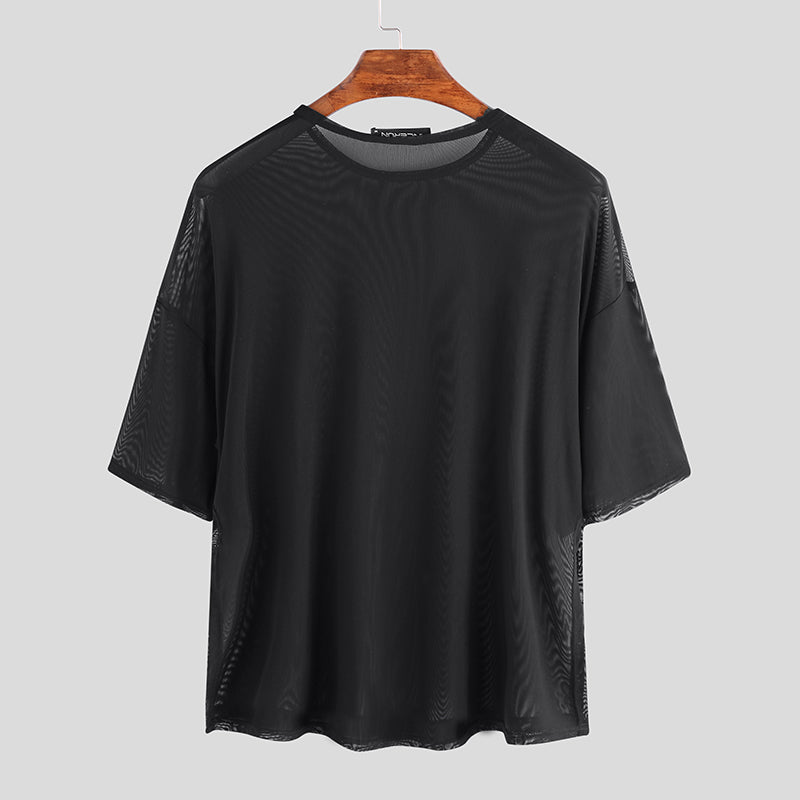 Mens Mesh See Through Loose Short Sleeve T-Shirts SKUE23527