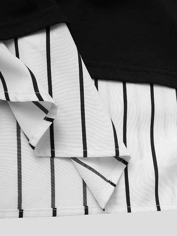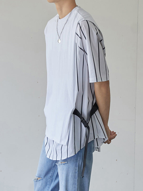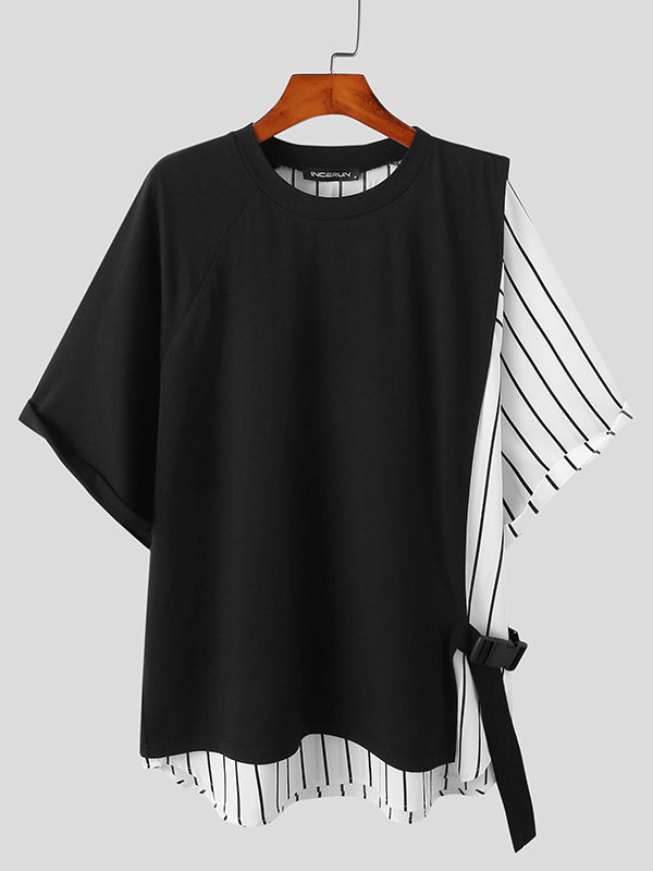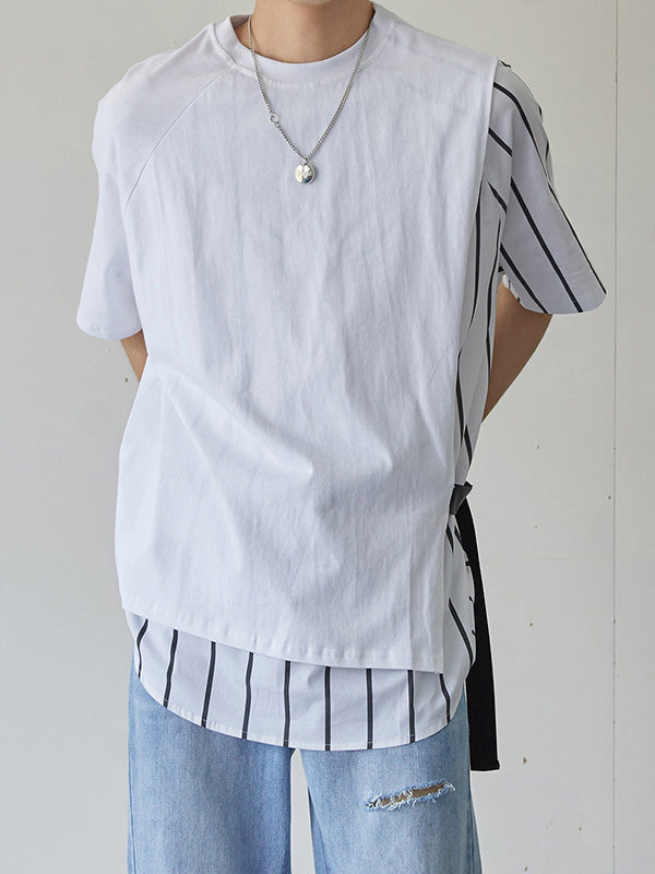 Mens Patchwork Striped Loose T-Shirts SKUH27165