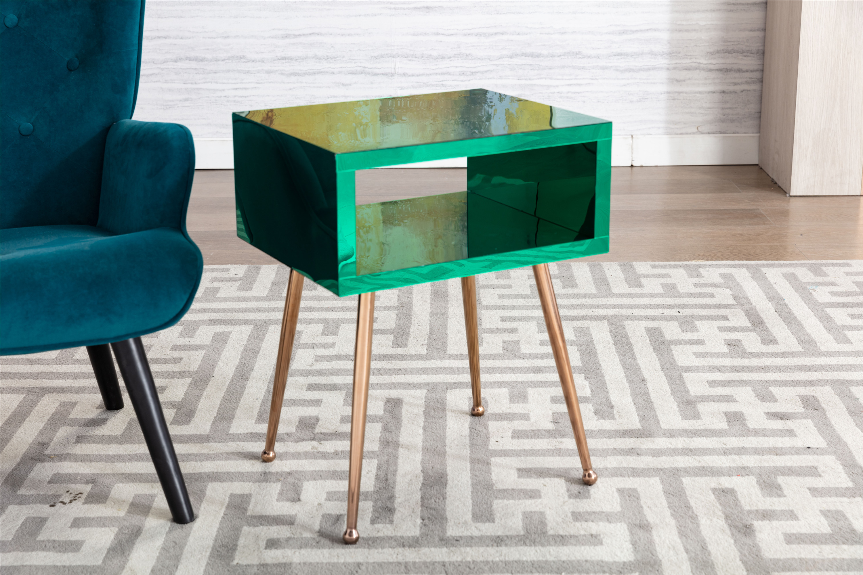 GLAM LOOK: High quality clear Acrylic material and stainless steel legs, showcasing a dazzling mirror-panel finish, our enchanting accent table brings homes a modern glam look