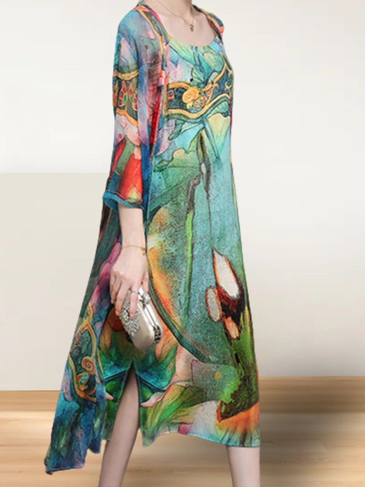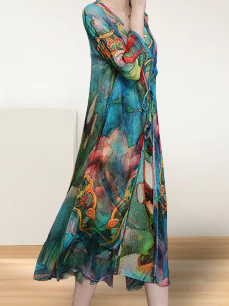 New Royal Sister Dress Temperament Light Familiar Style Retro Two-piece Set Printed Slim Midi Dress
