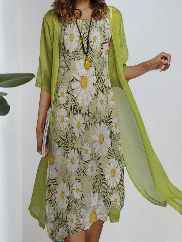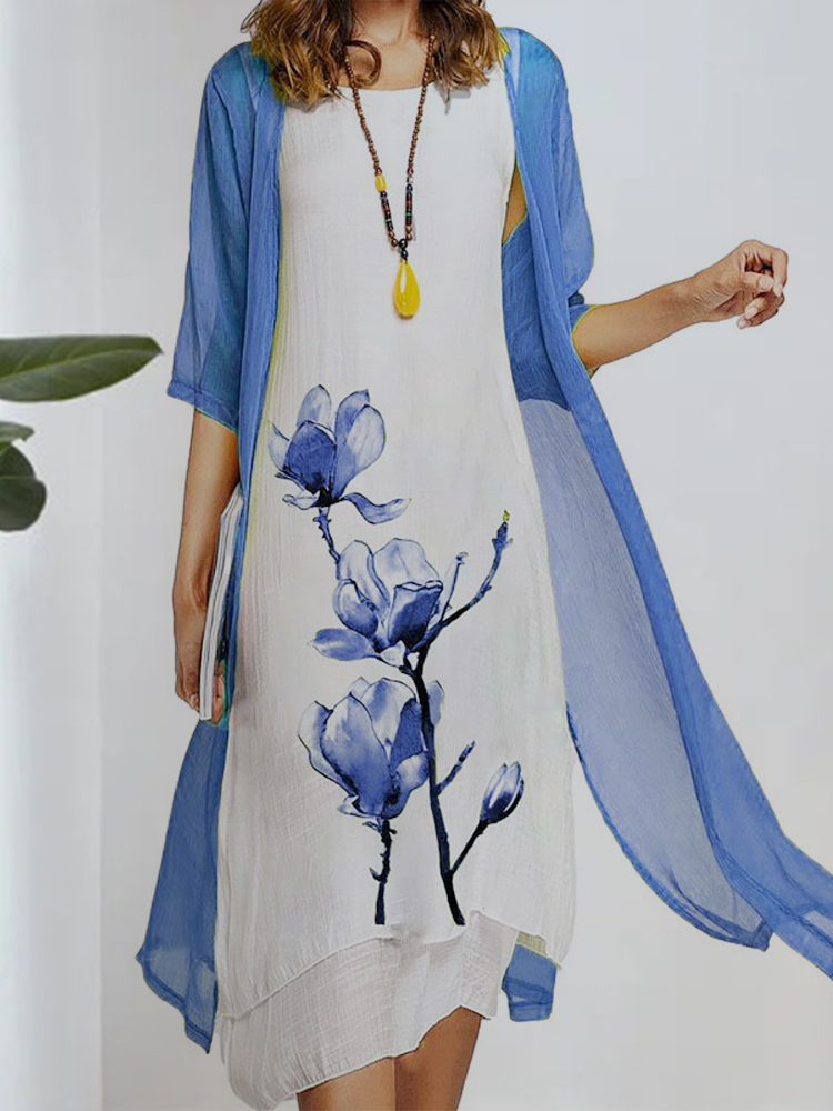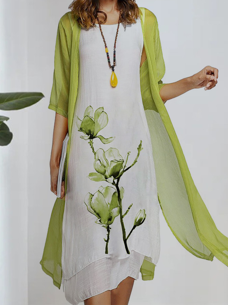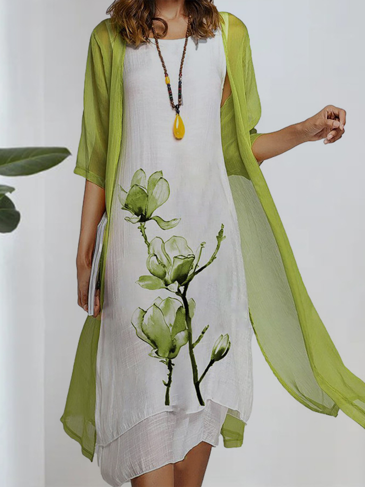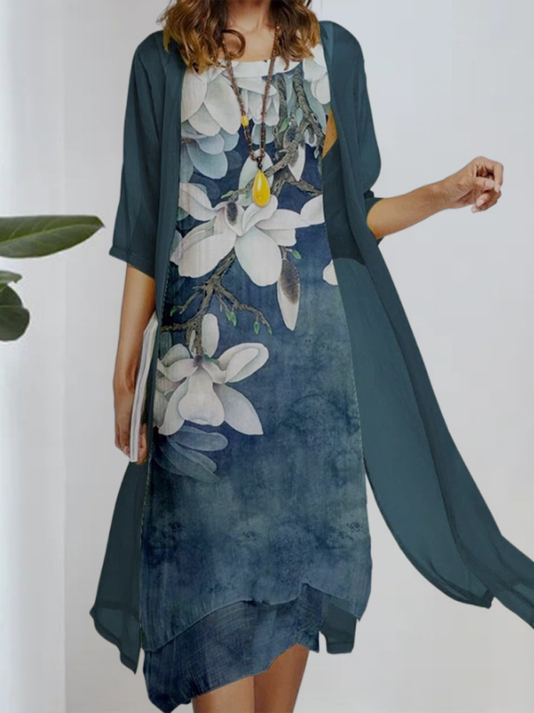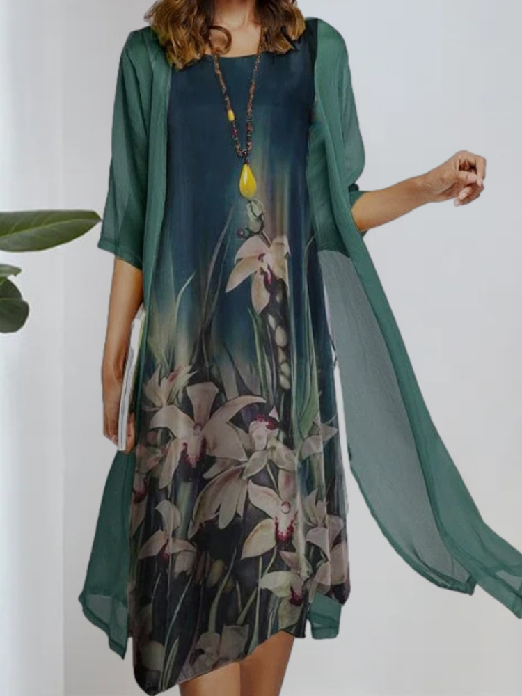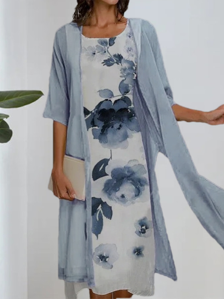 Women's round neck two-piece dress is casual in style, with simple and generous color matching, suitable for temperamental commuting. The printing on the skirt adds a sense of mystery. The loose fit is suitable for all body types. We use high-quality chiffon fabrics and strive to provide customers with an excellent service experience. Hurry up and place an order!