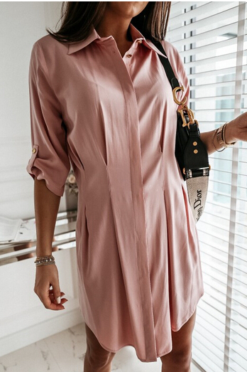 Women´s Irregular Shirt Summer Fashion Casual Wild Solid Color Flip Sleeve Button Down Blouse