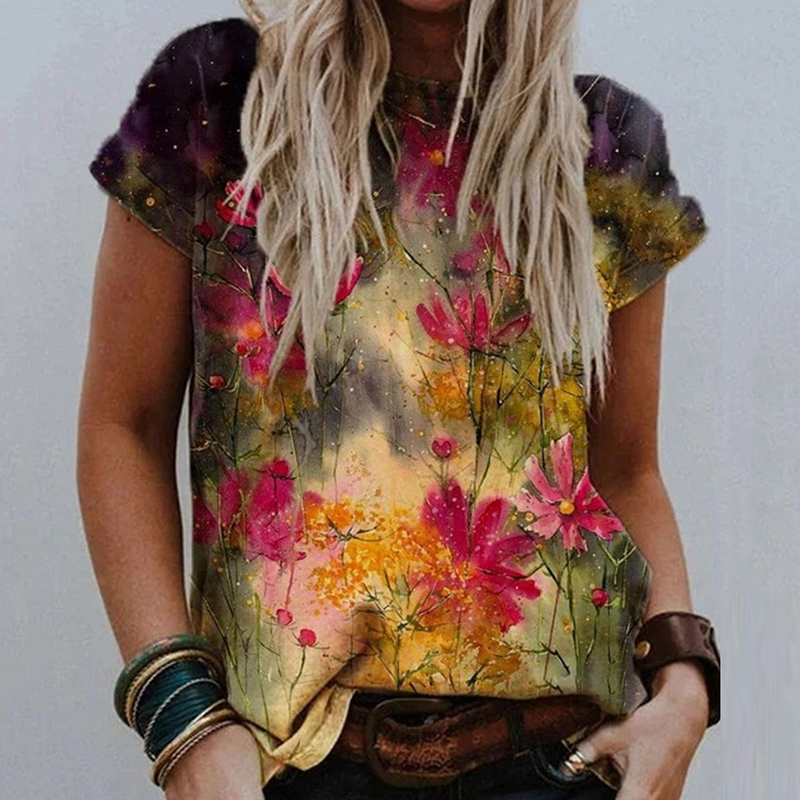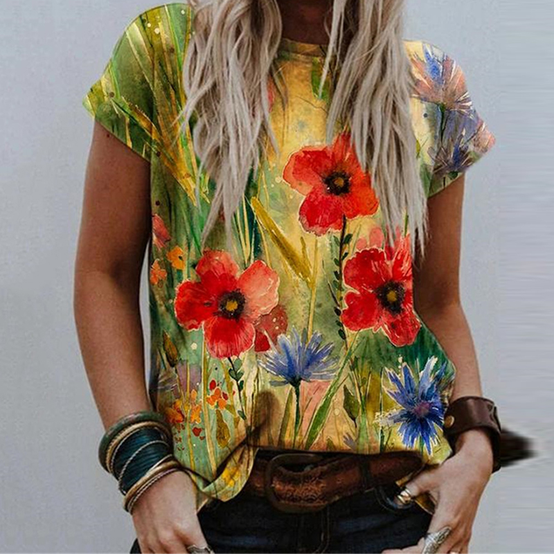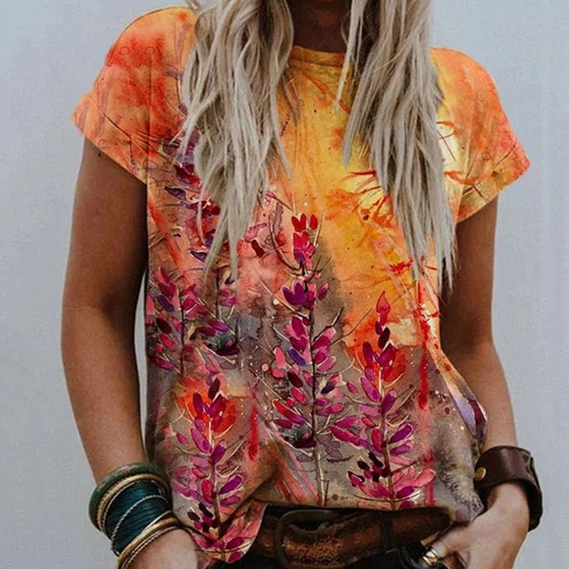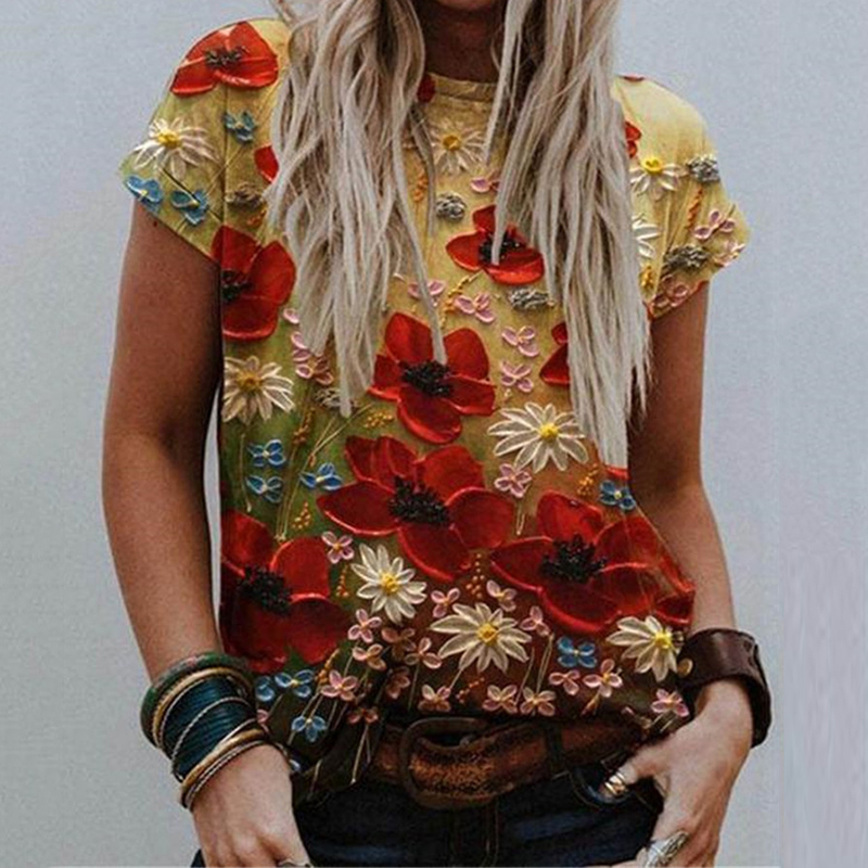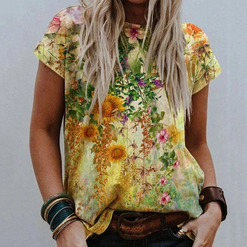 Women O Neck Vintage Pattern Print Blouse Shirt Elegant Summer Short Sleeve Pullovers Tops Casual Loose Streetwear Blusas