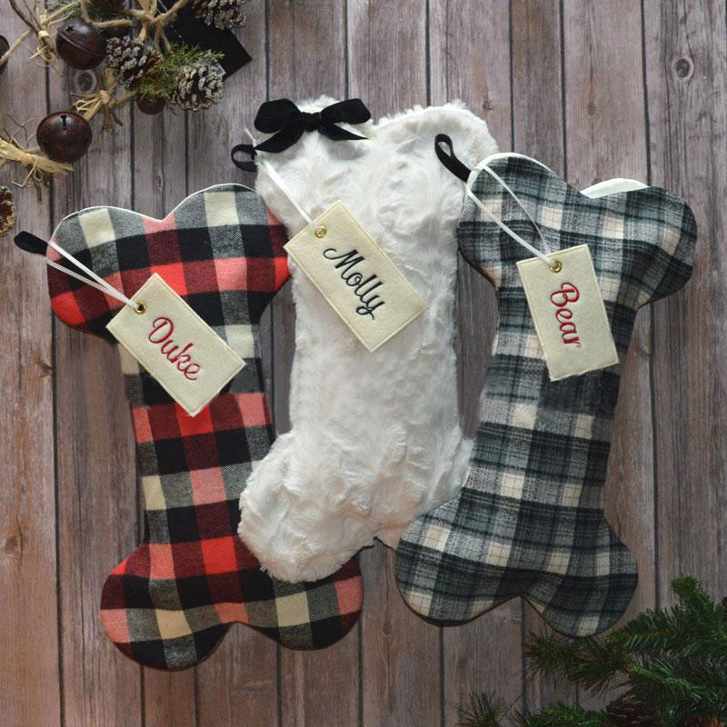 Our plaid flannel dog stockings are a great way to include your pet this Christmas.