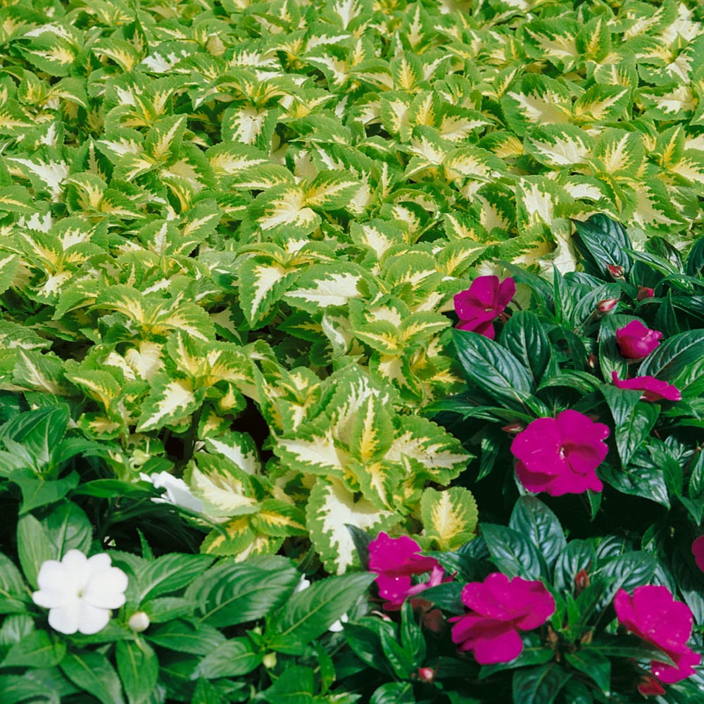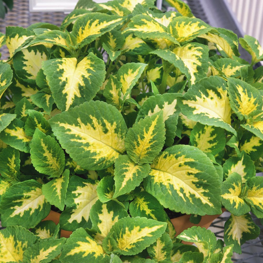 Coleus (Coleus Wizard Jade) - Start Coleus seeds for this exotic foliage plant that never disappoints! Wizard Jade has ivory at the center of the leaves and greens around the edges. It's a beautiful plant for a shade that can be mixed in containers with other shade-loving plants.
