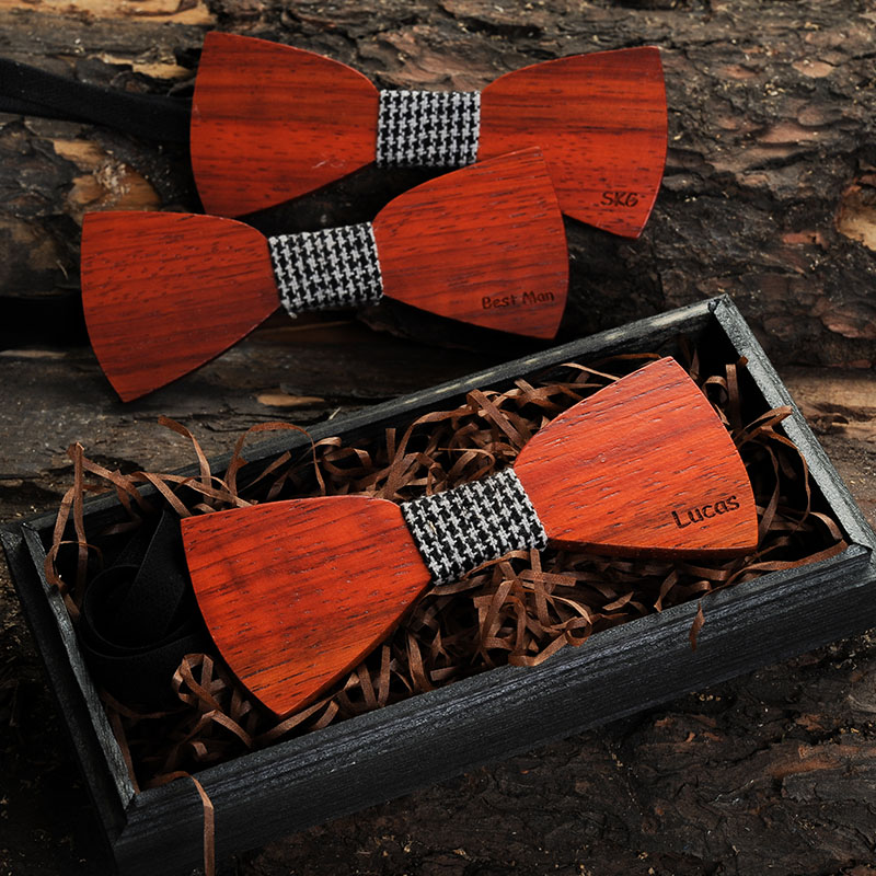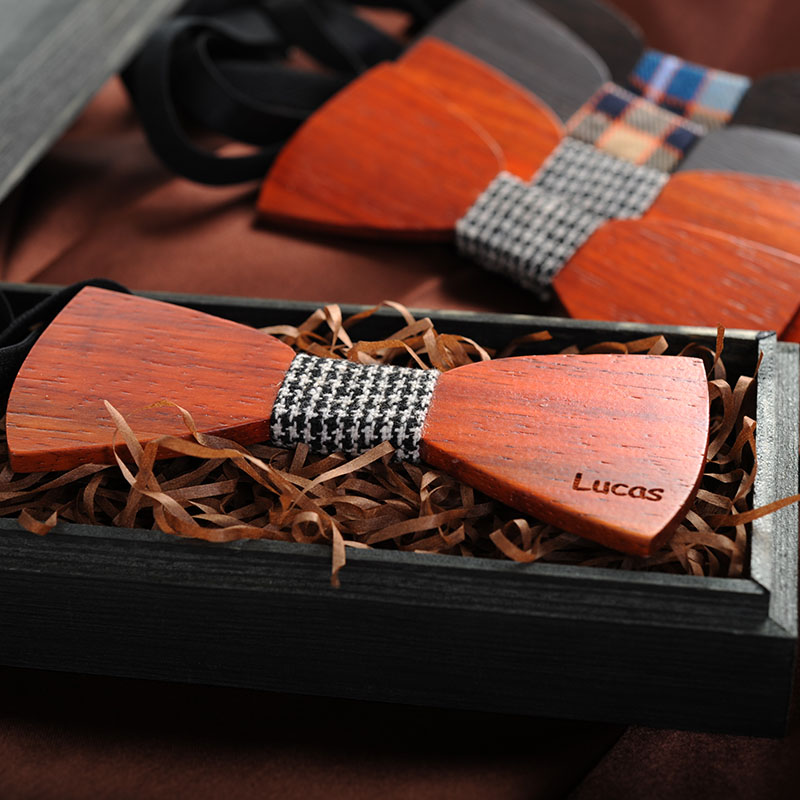 - Made of wood, this bow tie will make your groomsmen look unique and emphasize their individuality.