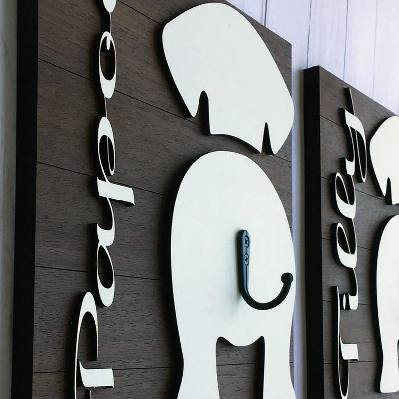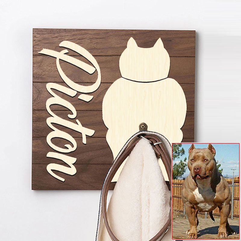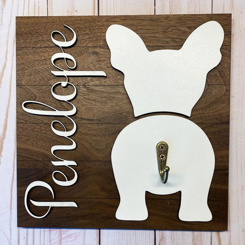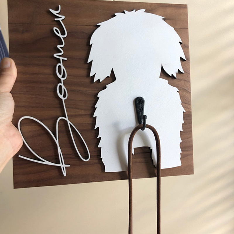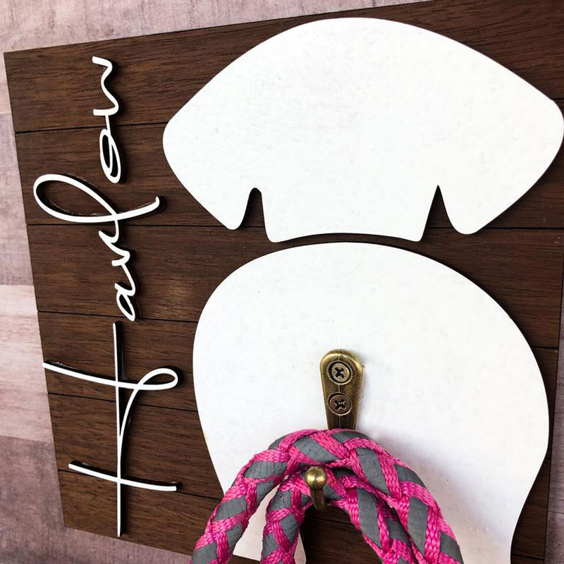 Leash hanger made from eco-friendly wood - 100% pine. Words and paw made of plywood.