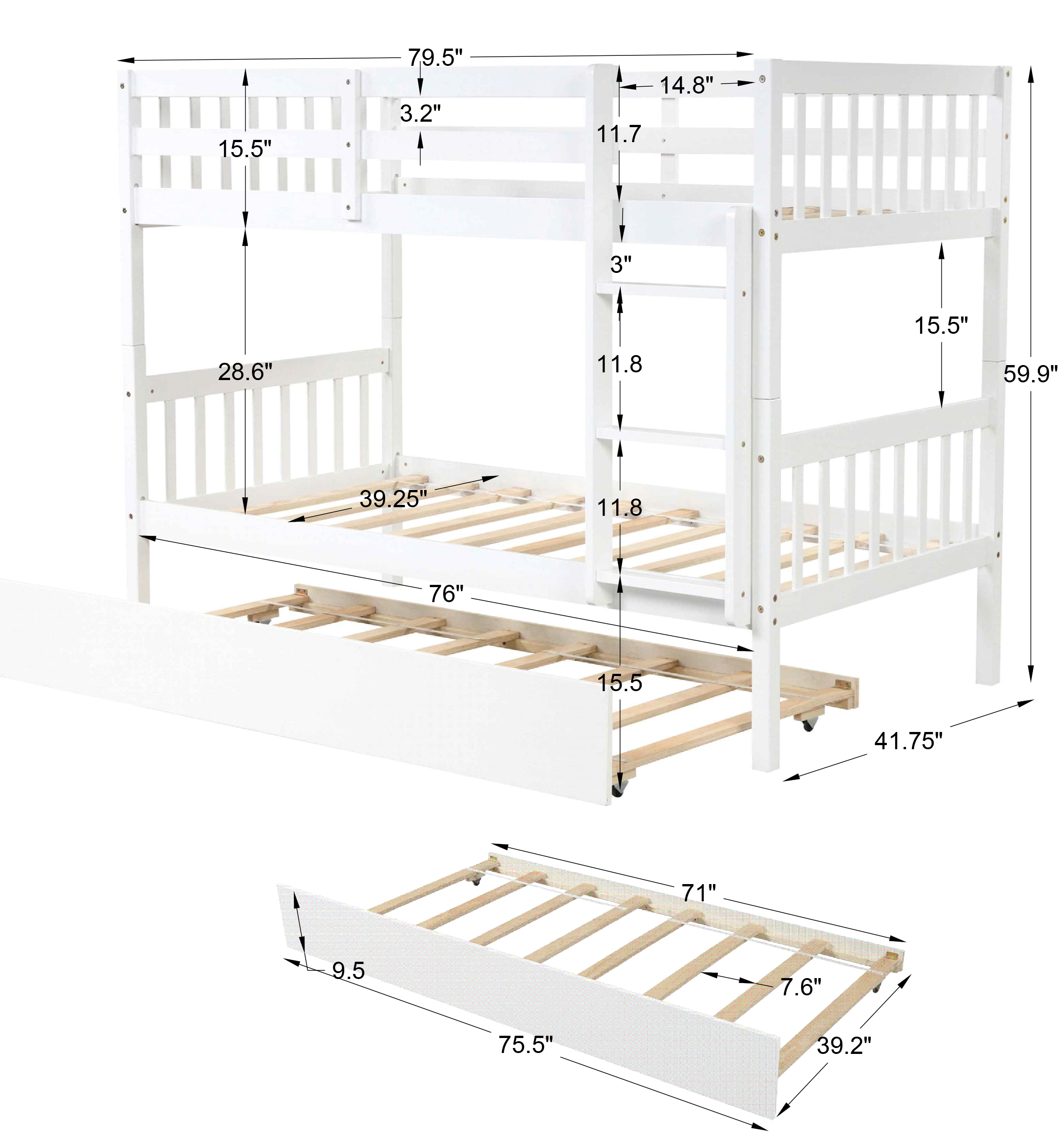 Load Capacity: 200 lbs per upper/down/trundle bed