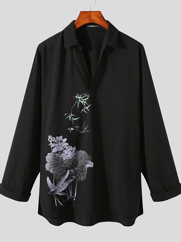 Men's Floral Print Long-sleeved Shirts SKUH01365