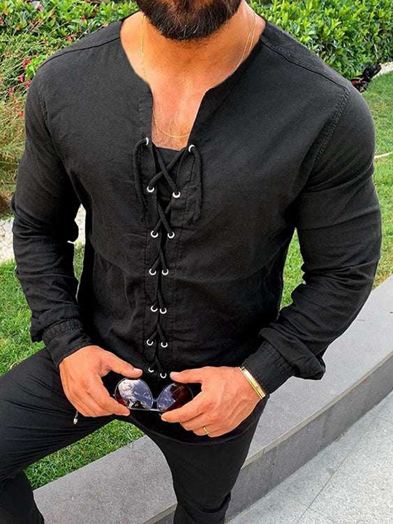 Product Description:Men's Solid Color Tie Long Sleeve Top.