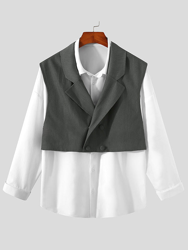 Men's Patchwork Vest Long Sleeve Shirts SKUH15053