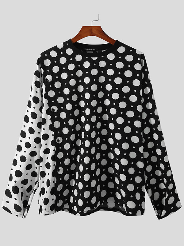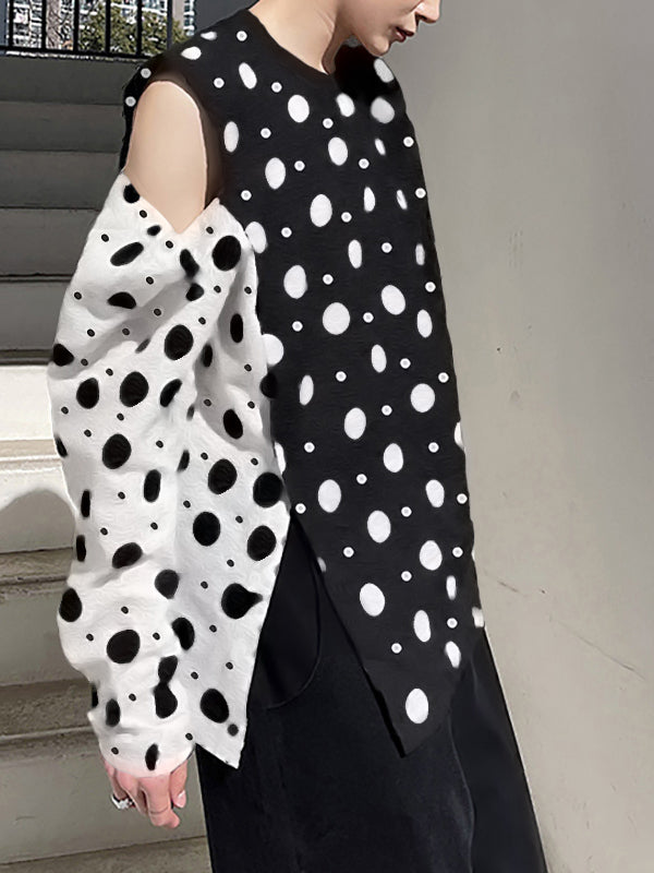 Men's Polka-dot Patchwork Off-shoulder T-Shirts SKUH59067