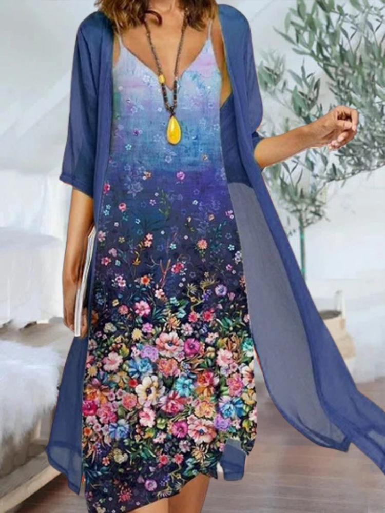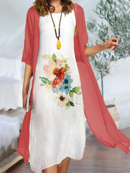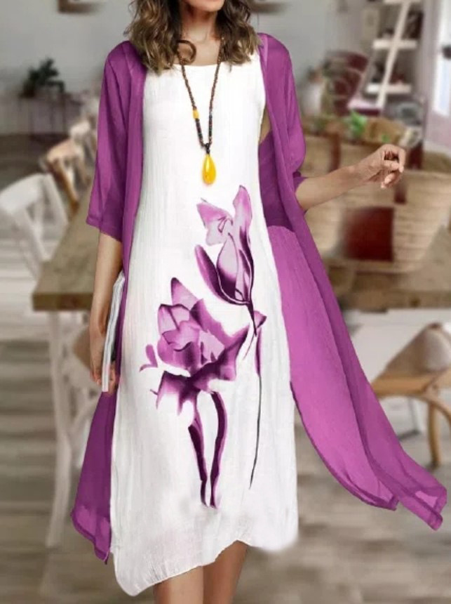 Women's round neck two-piece dress is casual in style, with simple and generous color matching, suitable for temperamental commuting. The printing on the skirt adds a sense of mystery. The loose fit is suitable for all body types. . We use high-quality fabrics and strive to provide customers with an excellent service experience. Hurry up and place an order!