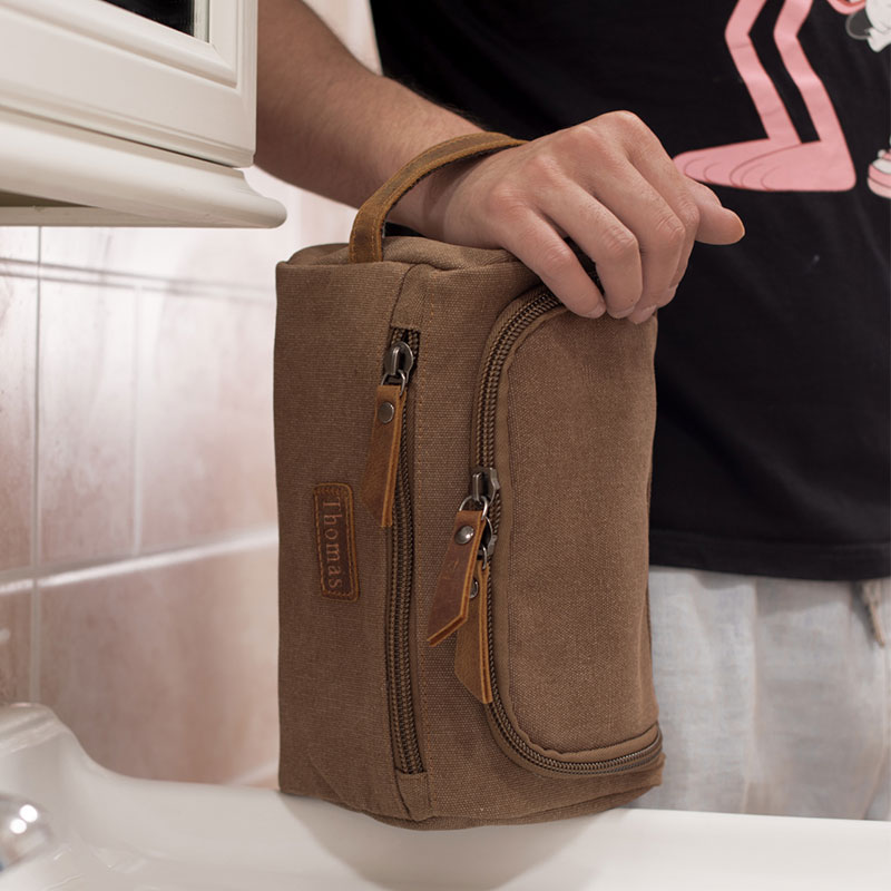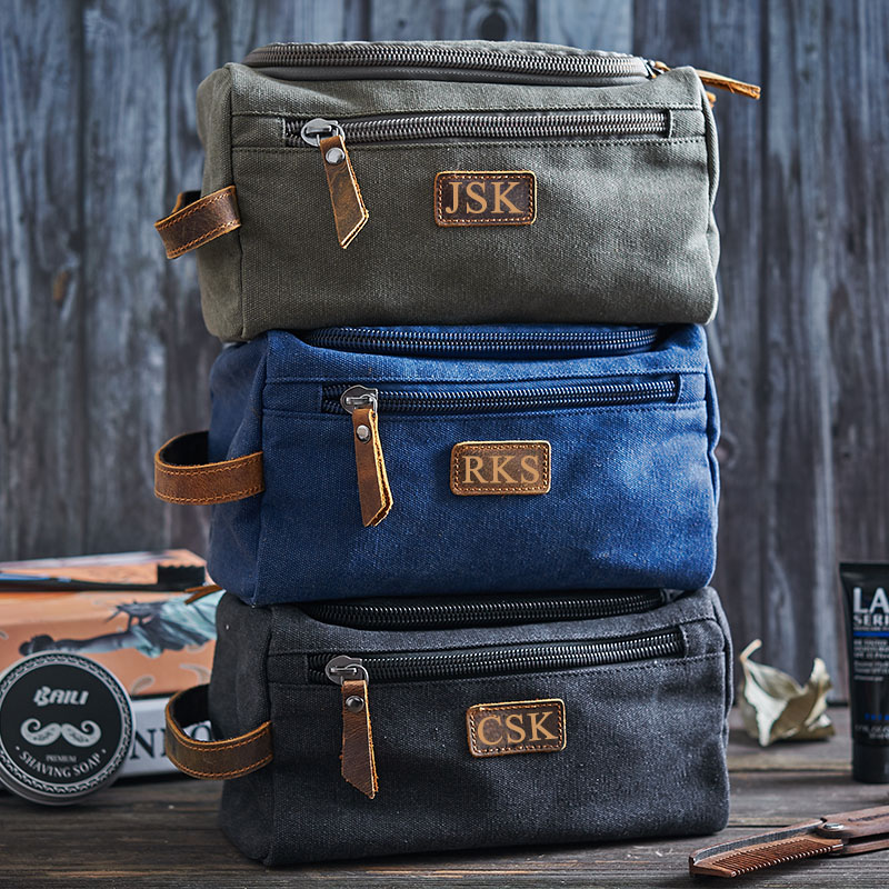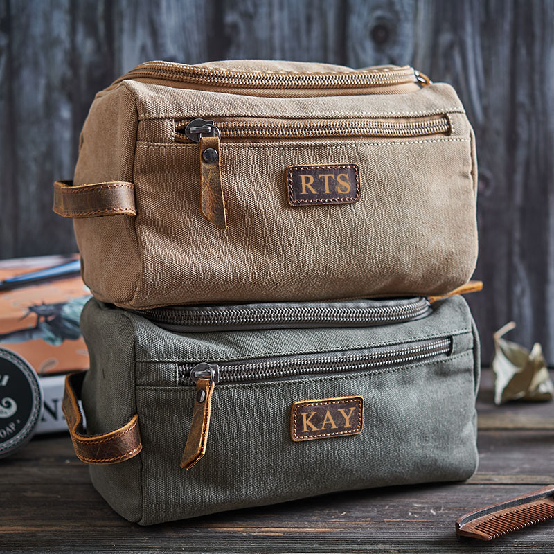 Looking to get your groomsmen something which is functional? This canvas and leather toiletry bag is a perfect man gift. An excellent addition for any stylish man on the go.