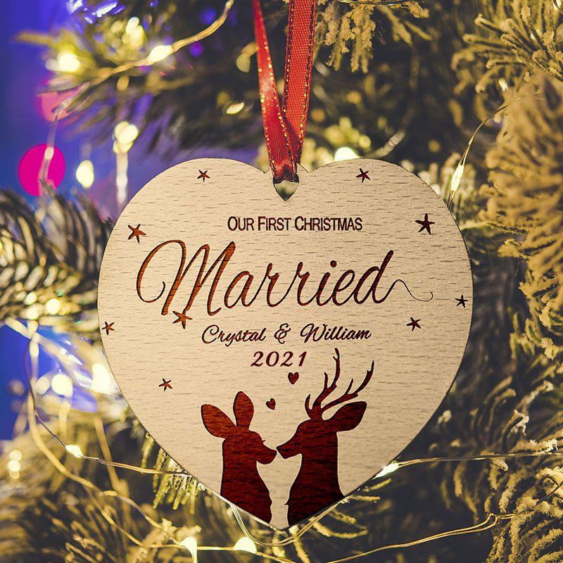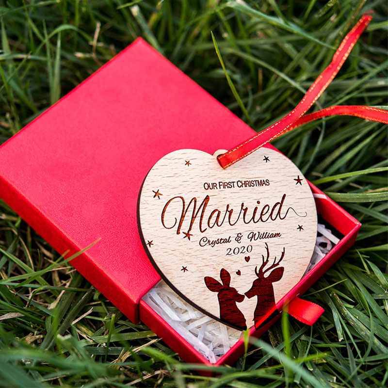 This cute little gift can be customized according to your personal information and will be the perfect Christmas decoration after the wedding.