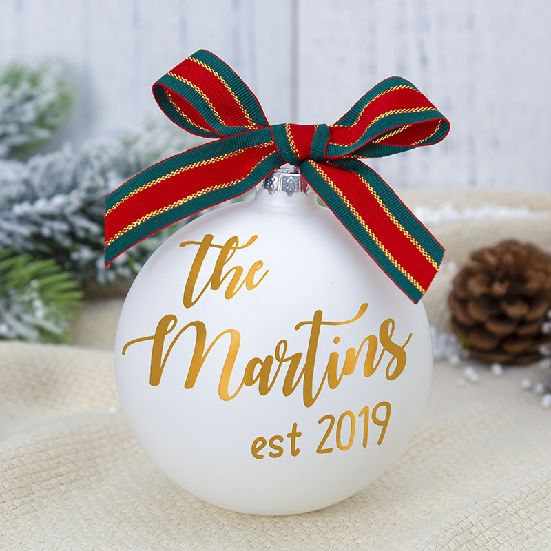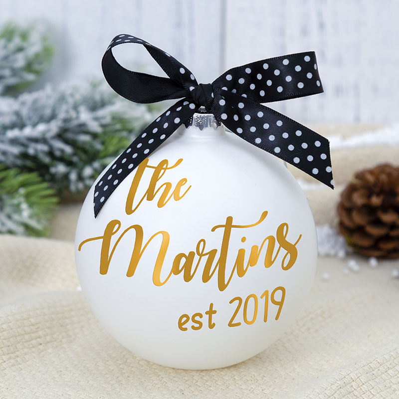 This sparkling glass ball can be customized to your personal information and will be the best decoration on the Christmas tree.