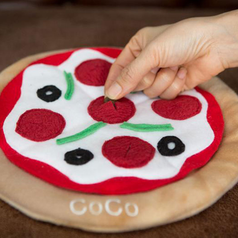 Soft frisbee-like toy that can both be snuggled with, a brain game by hiding treats in it's nooks and a frisbee!