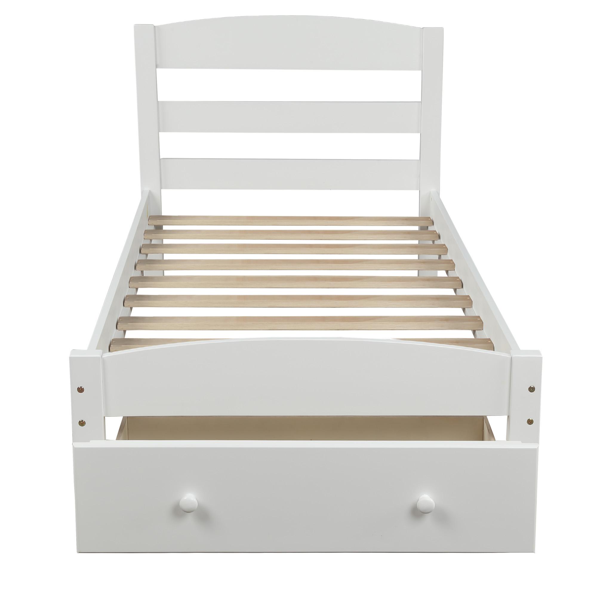Platform Bed with Wood Slats & Headboard & Drawer, Wood Bed Frame Twin Size, No Box Spring Needed