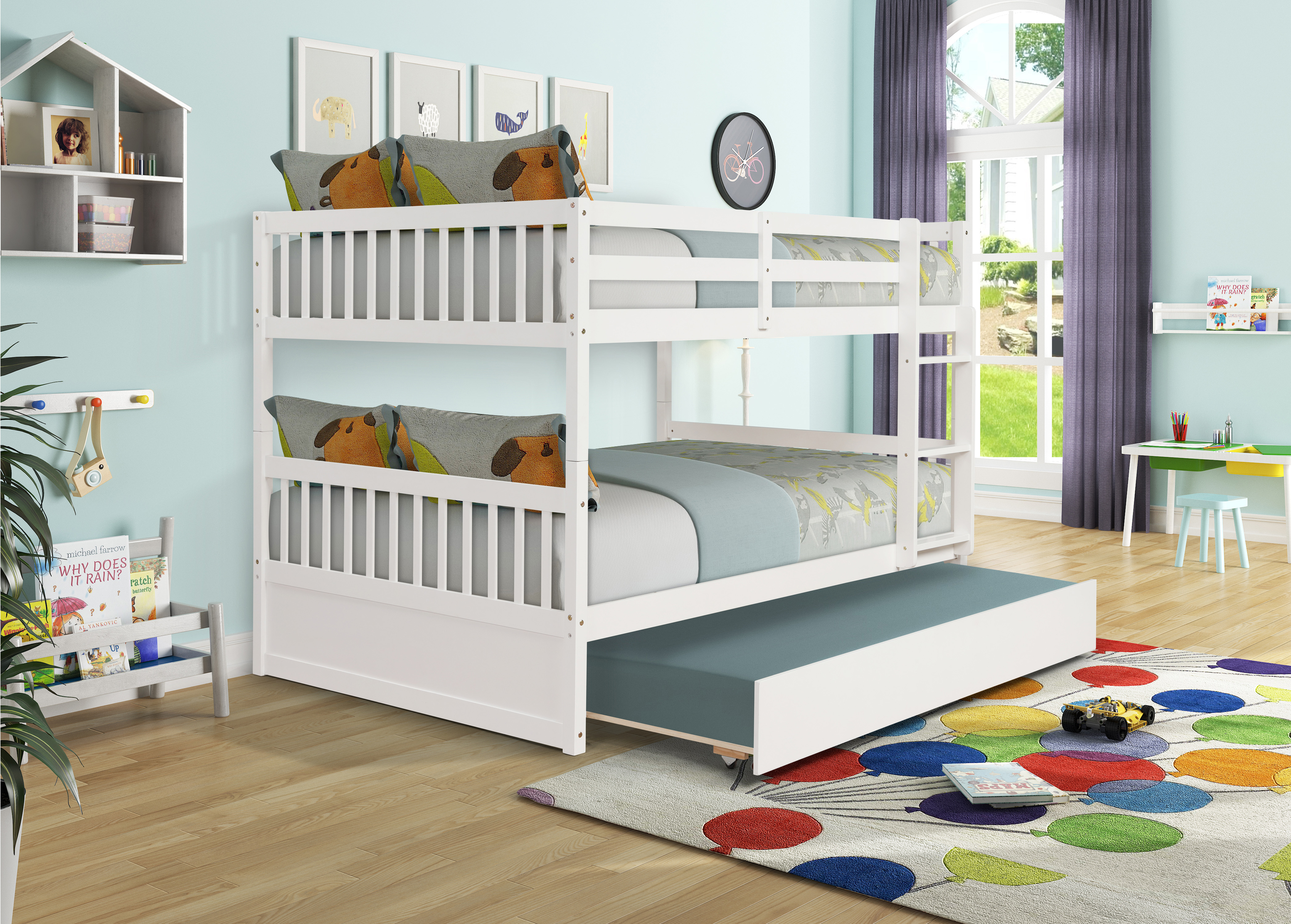Full over full bunk bed with easily pullout trundle