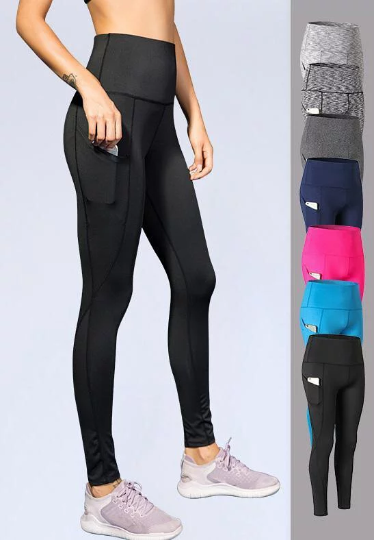 High waist side pockets tight sports pants women's breathable quick-drying running stretch buttocks slimming yoga fitness trousers