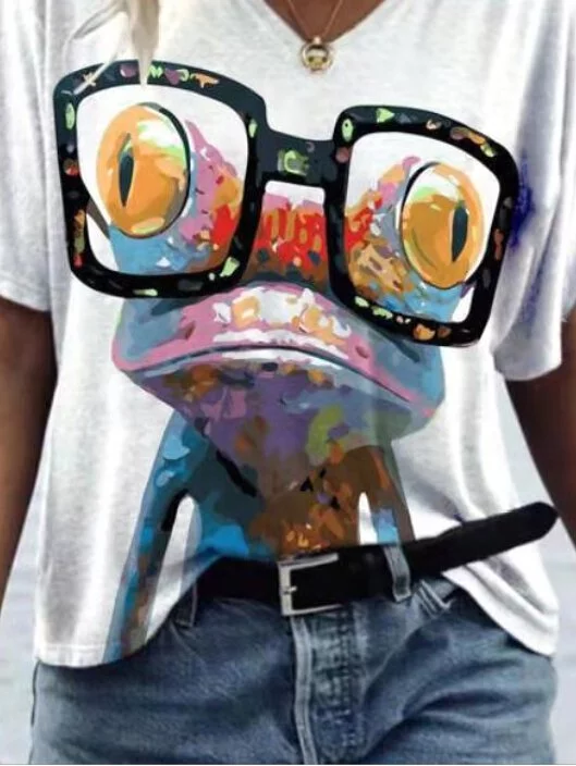 Women's T shirt Graphic Animal Print Round Neck Tops