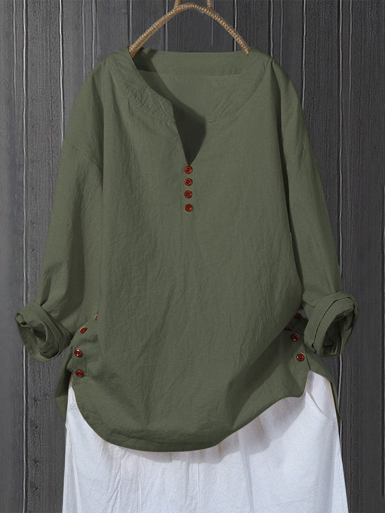 Women's Cotton Linen V-Neck Loose Large Size Shirt