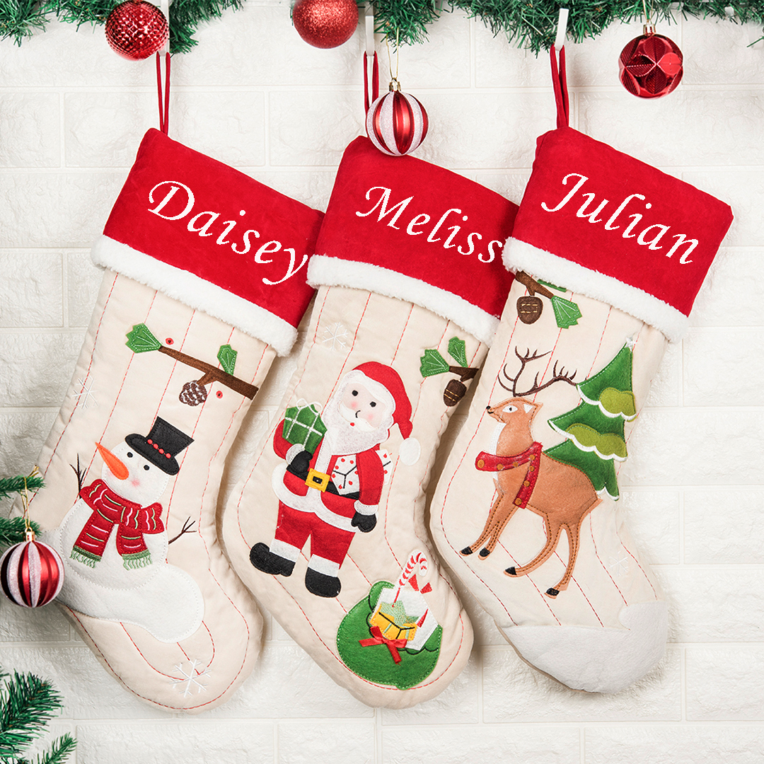 Embroideried Snowman/Dog/Cat Xmas Stocking