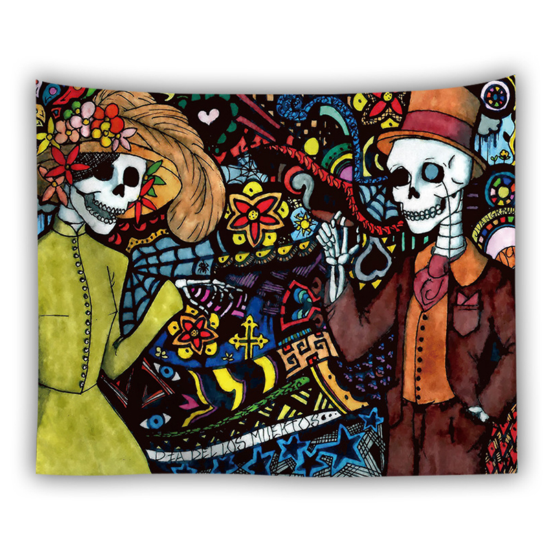 The Skull Couple - Crescent - 3D Beautiful Pattern Printed Tapestry