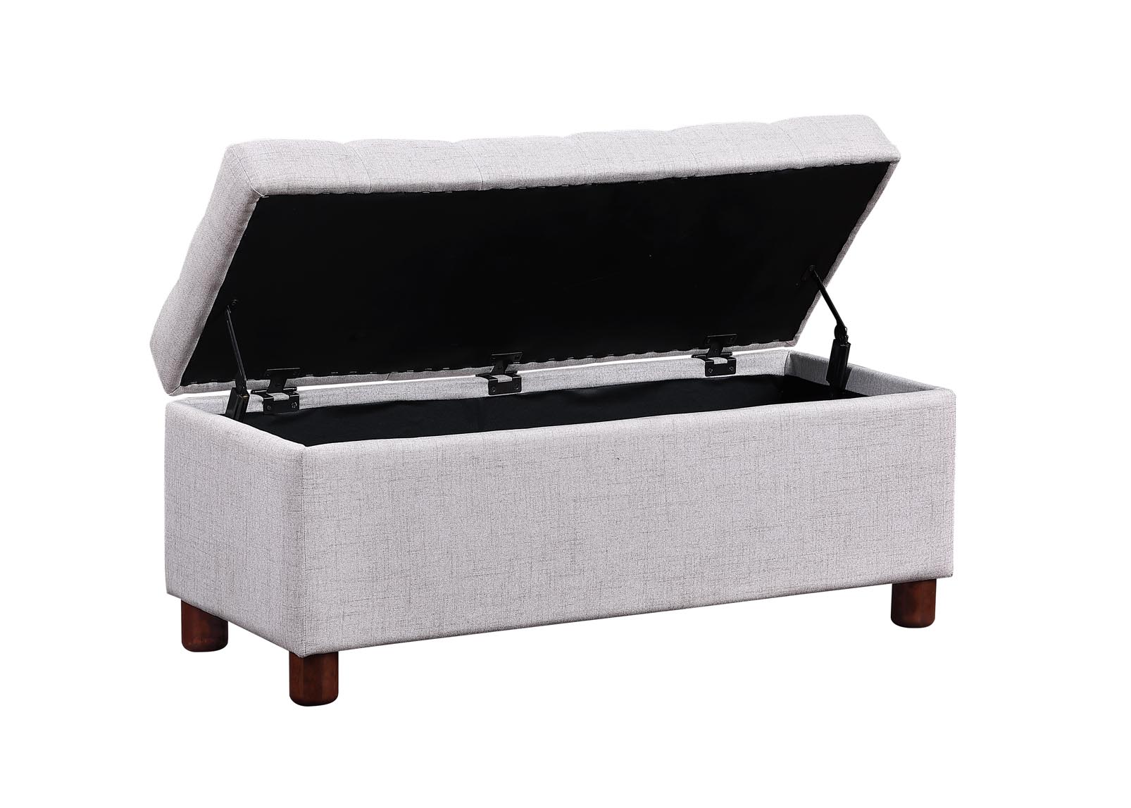 Versatile in both function and design, this clean-lined storage bench features a button-tufted top that lifts to reveal a convenient compartment to tuck away blankets, board games, and beyond. Crafted with a solid acacia wood frame, this piece measures 17.71'' H x 38.98'' W x 16.53'' D overall and supports up to 440 lbs, making it perfectly proportioned to offer seating for two. Neutral linen upholstery envelops the bench for an understated look, while cylindrical feet below sport a natural wood grain finish for a hint of warmth. Assembly is required.
