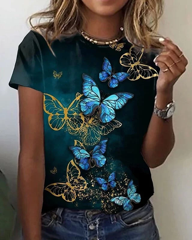 Women's Crop Tshirt Galaxy Graphic Flower Print Round Neck Tops