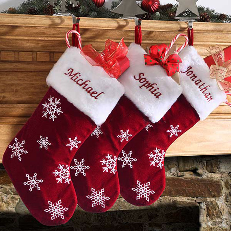Welcome to your this christmas with this customized snowflake red christmas stocking!