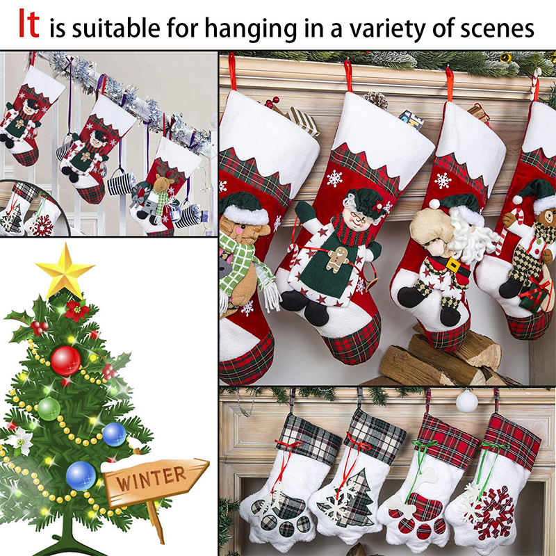 The Interior Can Be Filled With Gifts: The interior of our Christmas stocking is empty and the space inside is very large. You can fill the inside of the Christmas stockings with gifts and hang them on the fireplace.