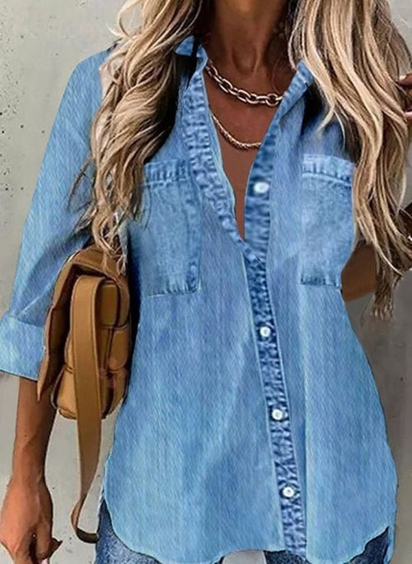 Groovy Plain Blue Long Sleeve Top