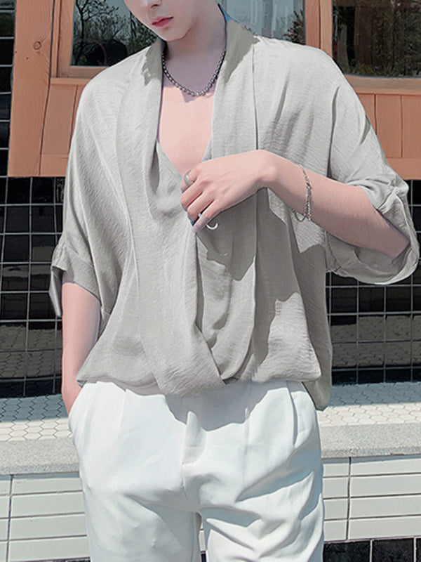 Mens Deep V-neck Half Sleeve Loose Shirts SKUG84125