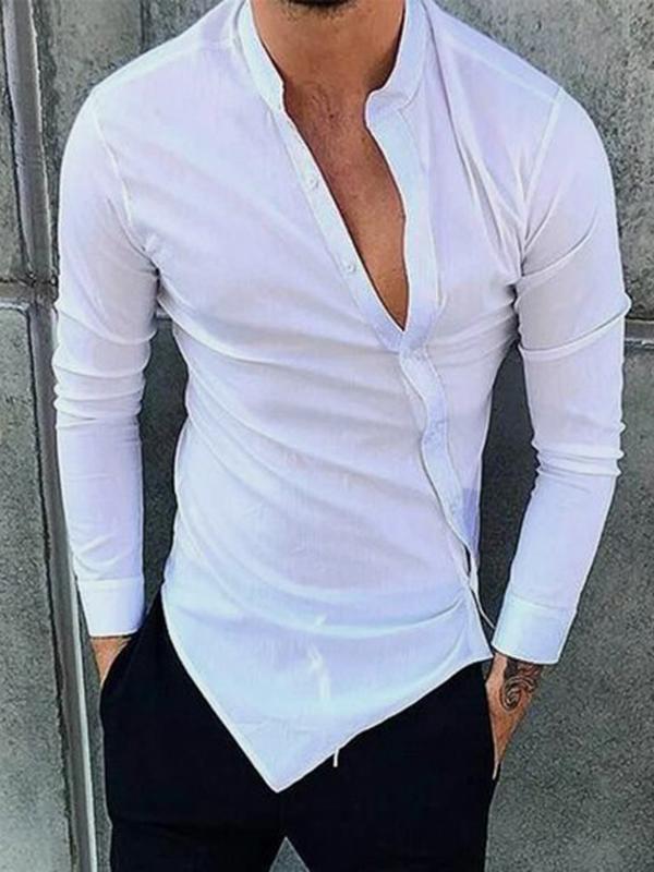 Men's Irregular Button Long Sleeve Shirts Top