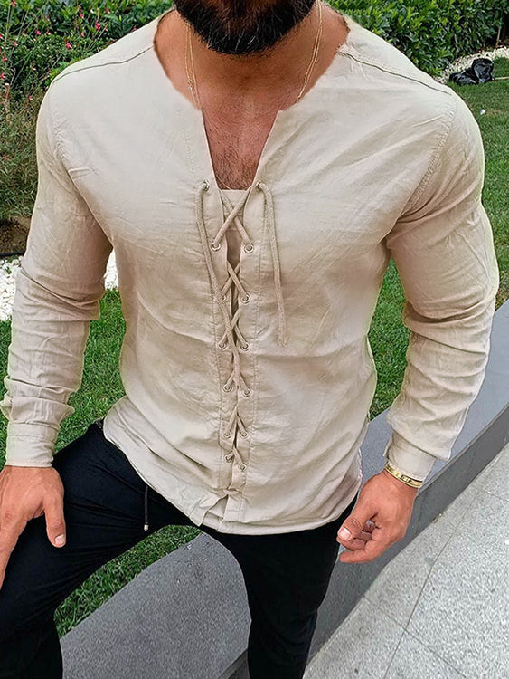 Men's Lacing Retro Casual Long Sleeve T-Shirts SKUD16554