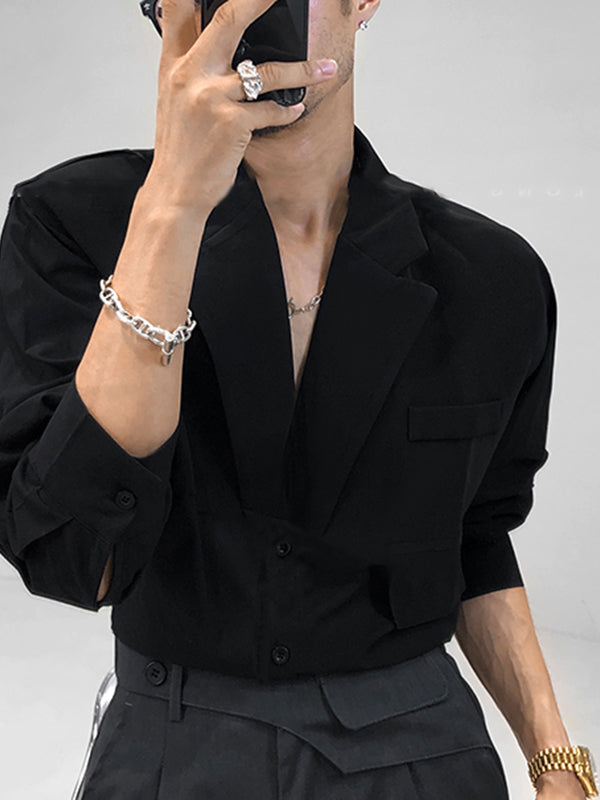 Mens Large Lapel Patchwork Long Sleeve Shirts SKUI27978