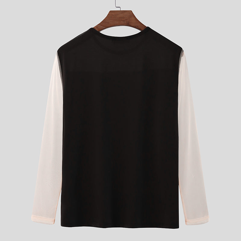 Men's Mesh See Through Long Sleeve T-Shirts SKUF88656