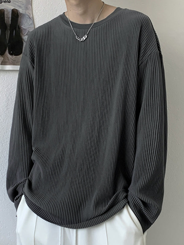 Mens Pleated Round Neck Long-sleeved T-Shirts SKUI24812