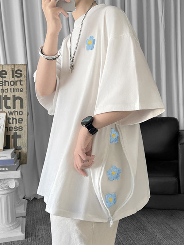 Men's Side Zipper Floral Half Sleeve T-Shirts SKUH79070