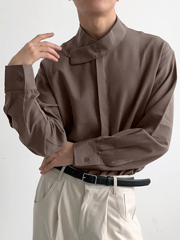 Mens Stand Collar Solid Color Long Sleeve Shirts SKUI65522