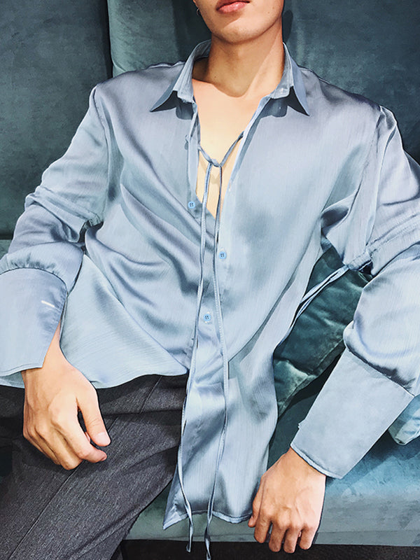 Mens String Casual Long-sleeved Shirts SKUH44148