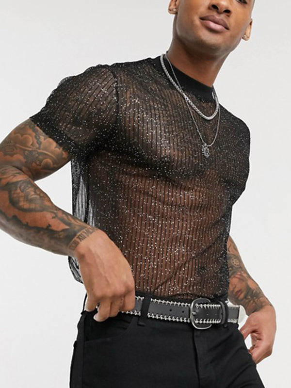Mens Striped Mesh See Through T-Shirts SKUE87900