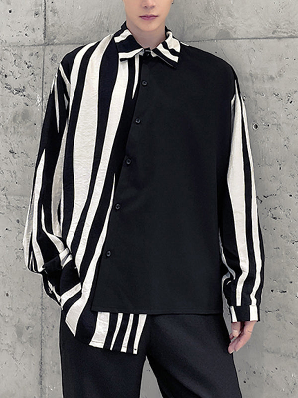 Mens Striped Patchwork Long Sleeve Shirts SKUG63001