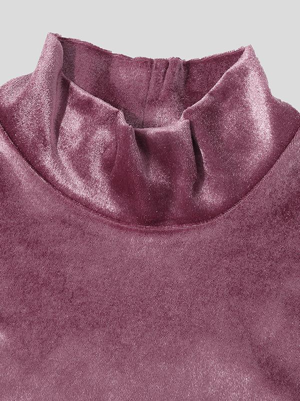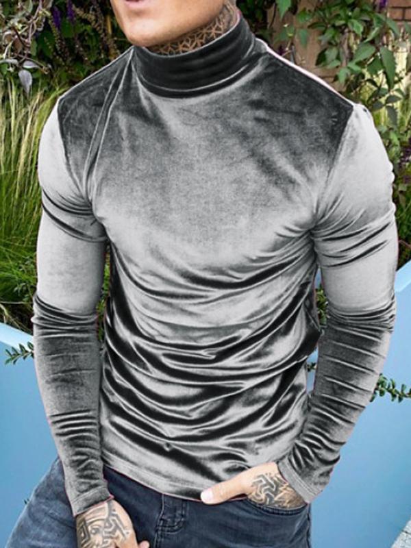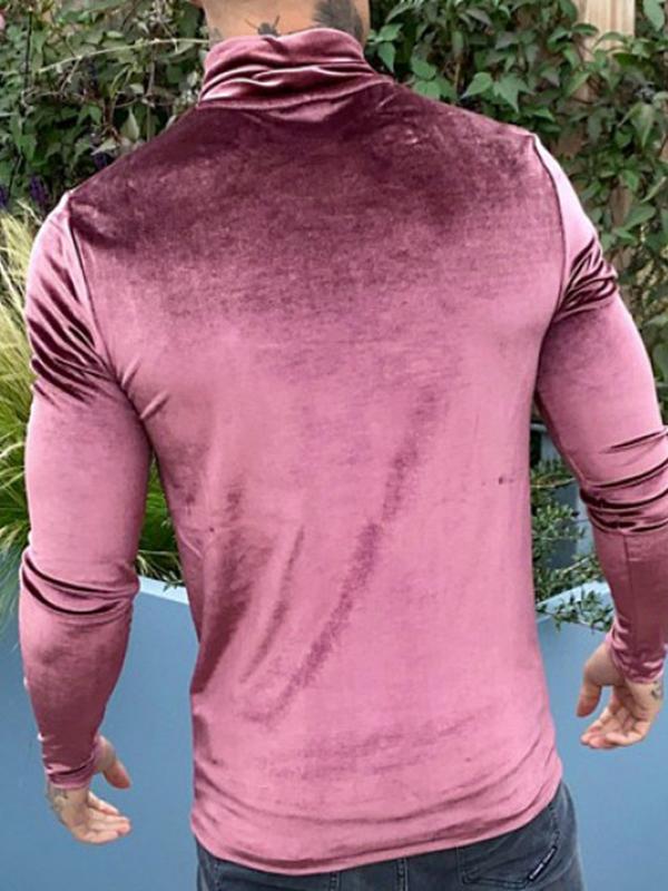 Mens Suede High Neck Long Sleeve T-Shirts SKUH92894