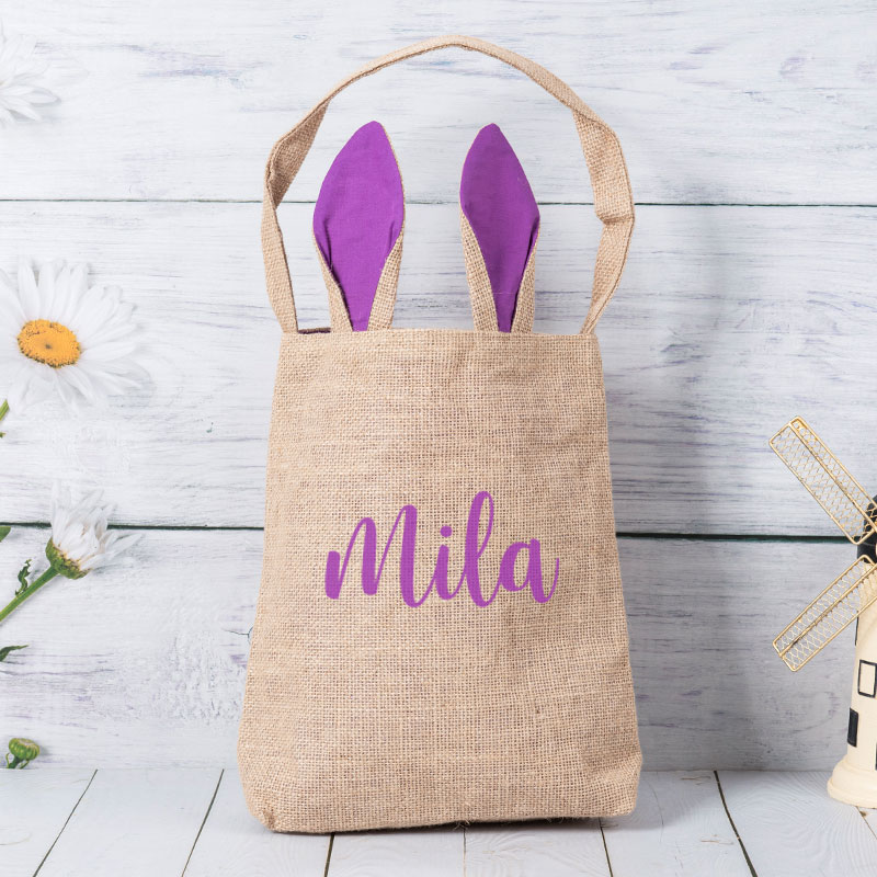 These bags have a canvas or burlap outside material and a cotton lining in the inside that matches the color of the ears.