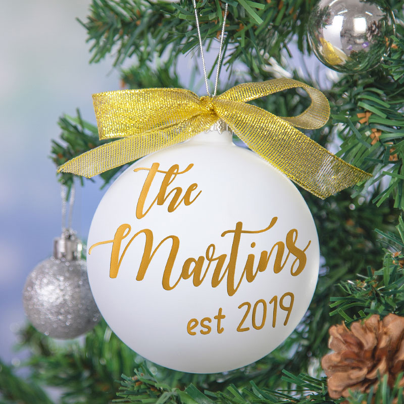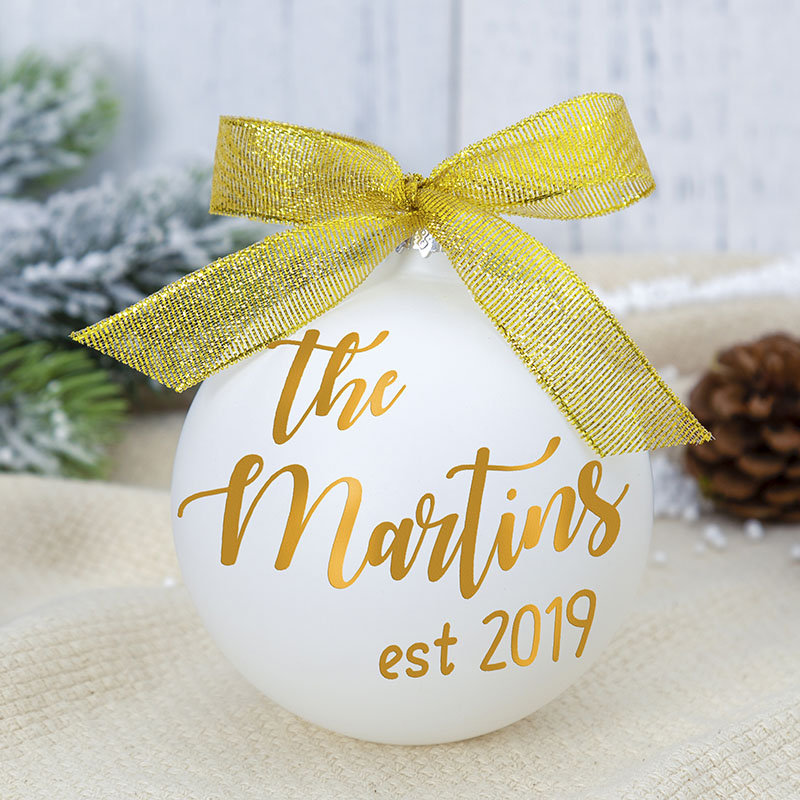 This sparkling glass ball can be customized to your personal information and will be the best decoration on the Christmas tree.