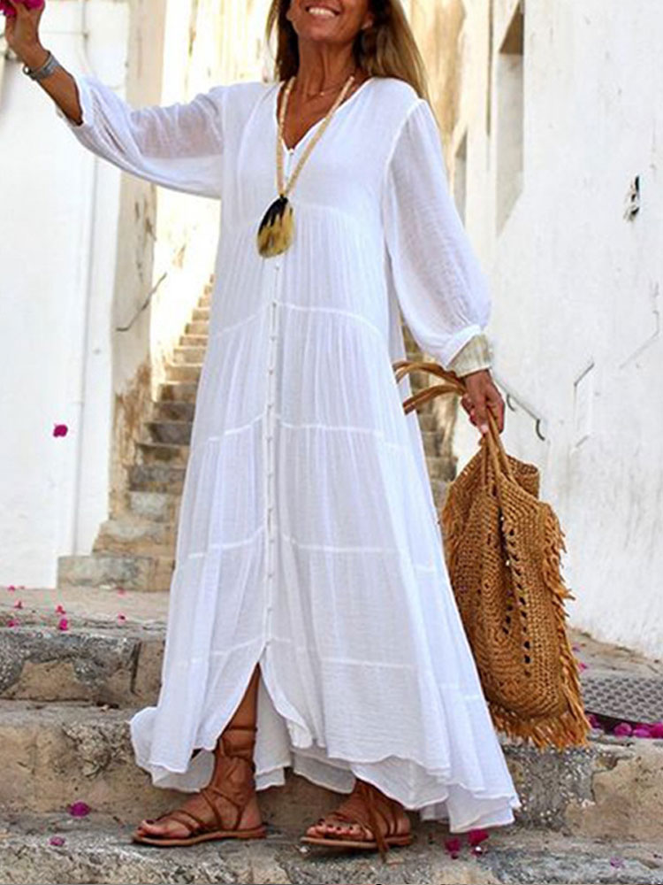 Bohemian long sleeved dress with national style brings infinite charm to you in spring and summer. It is cool, dignified and elegant. It is the best choice for friends' gathering or traveling.